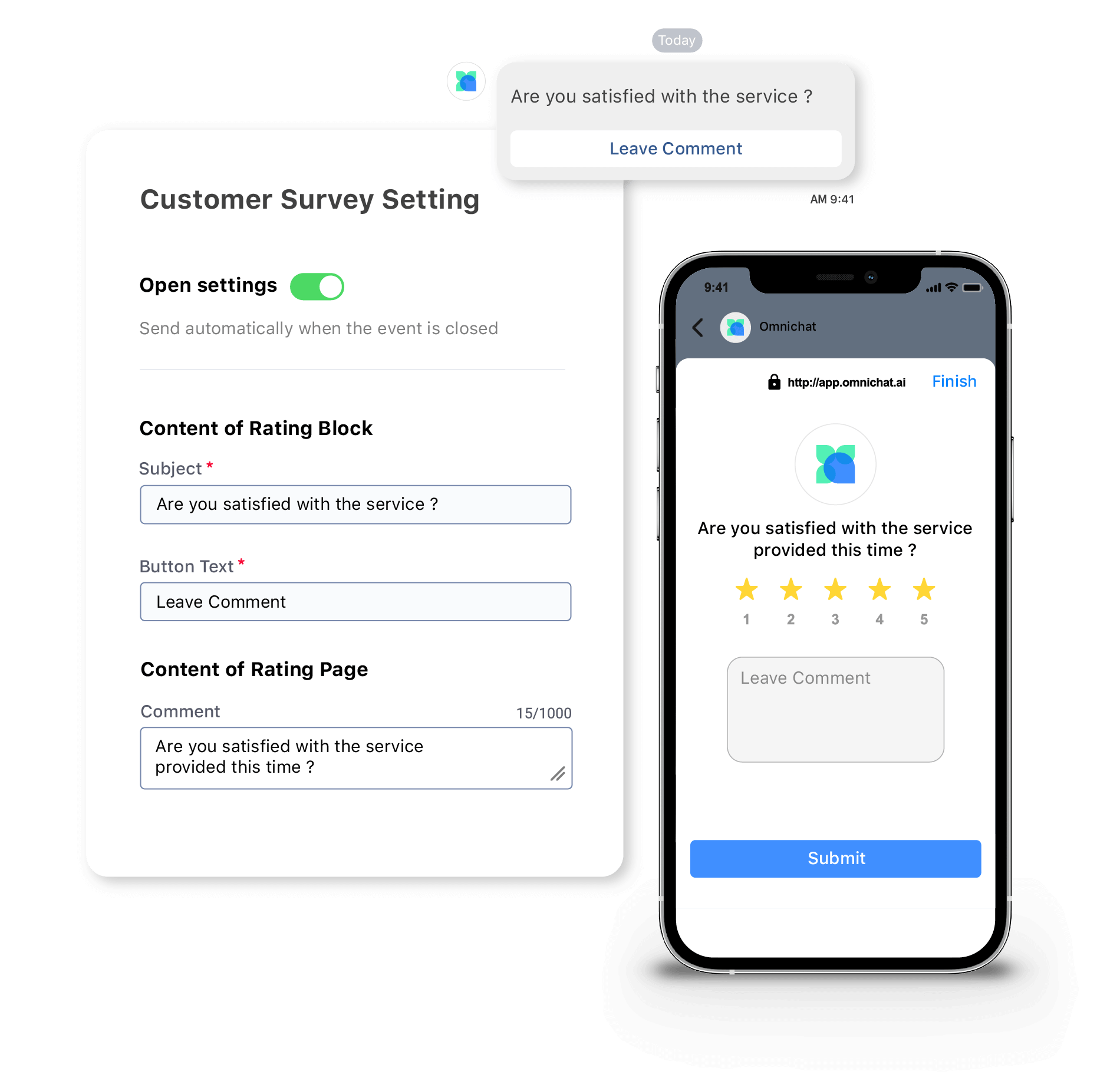 When customer service agents click ‘Close the conversation’, customers will automatically receive the satisfaction survey.