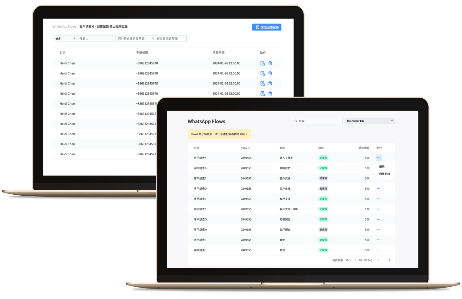 Access complete WhatsApp Flows data and status reports directly within the Omnichat platform. Easily track responses, export reports, and analyse performance to optimise future customer engagement campaigns.
