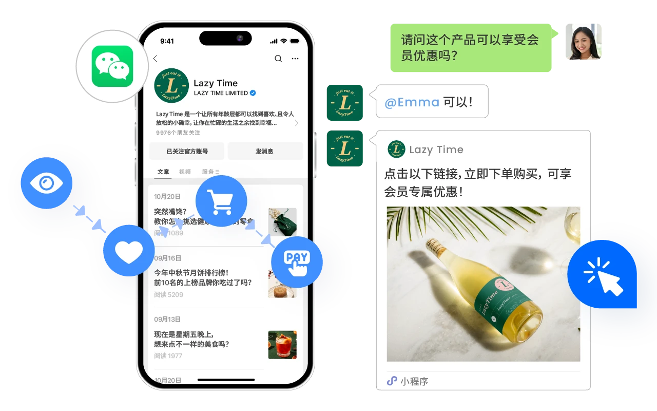 Omnichat支持与您的微信服务号(国际版)完美集成。
