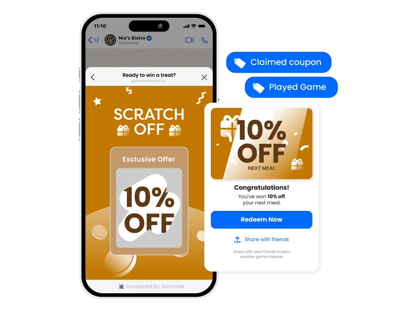 Spark interaction and increase conversions with mini games like spin-the-wheel, scratch cards, or lucky draws — all playable directly in WhatsApp or LINE.