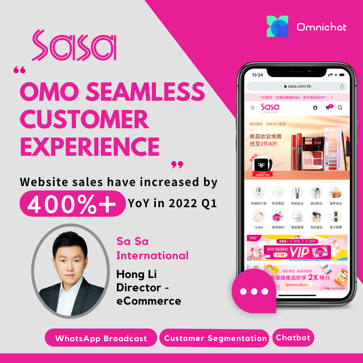 Sa Sa integrated all customer touch points, merging online and offline communications and sales. E-commerce stores and social commerce (such as WhatsApp & Facebook Messenger) , and brick and mortar stores complement each other perfectly.
