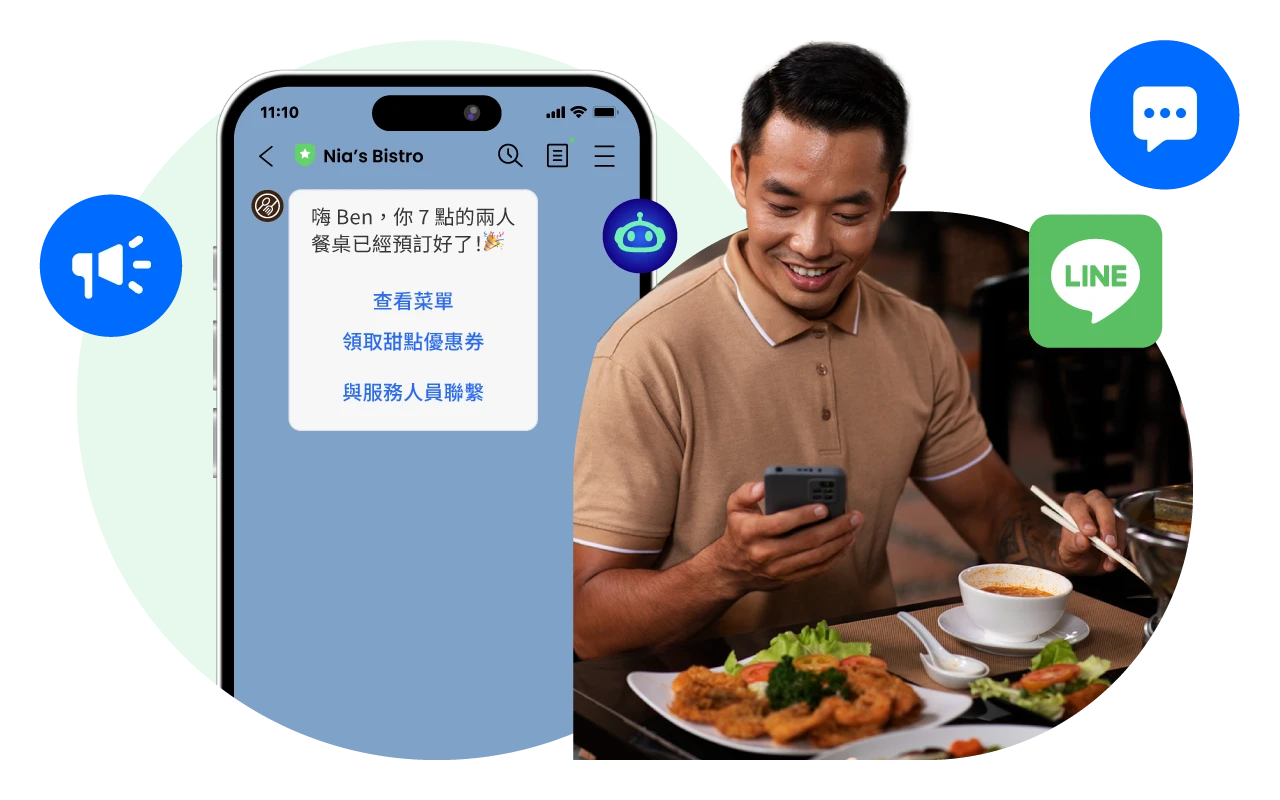 從回饋追蹤到專屬優惠,全都在 LINE 對話中完成,打造輕鬆又有黏著度的顧客體驗。