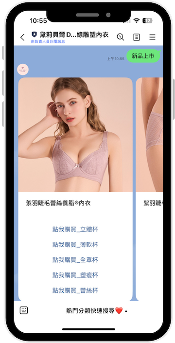 自訂子母切換選單,置入導購網址、標籤、聊天機器人,並彈性制定版型。