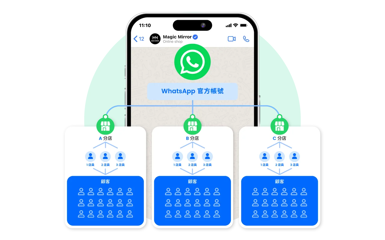 在品牌 WhatsApp 官方帳號中,建立分店、店員管理系統
