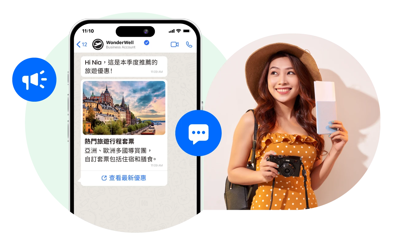 透過 WhatsApp Broadcast 一次傳送大量訊息予顧客,於顧客旅程的各個階段精準觸及目標客戶,訊息開啟率高達 80%,點擊率亦達到 10%!